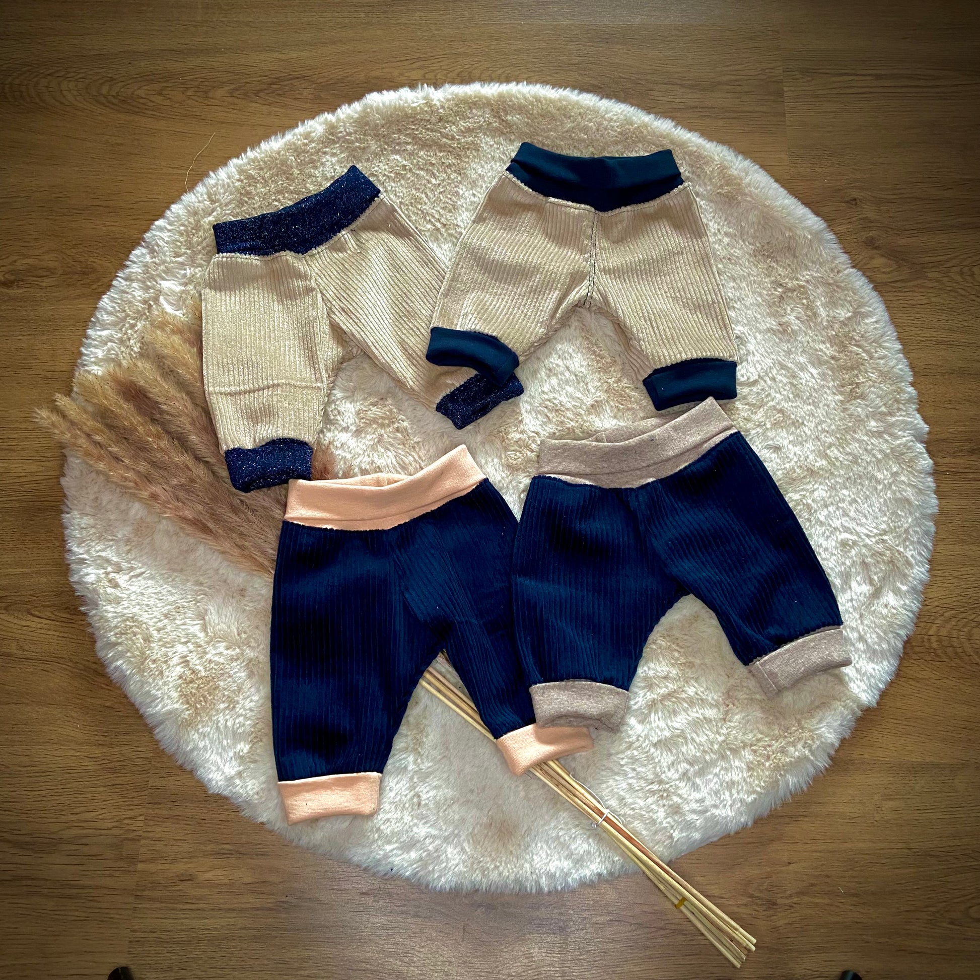 Die Hosen sind aus Cordstoff mit Bündchenstoff genäht.