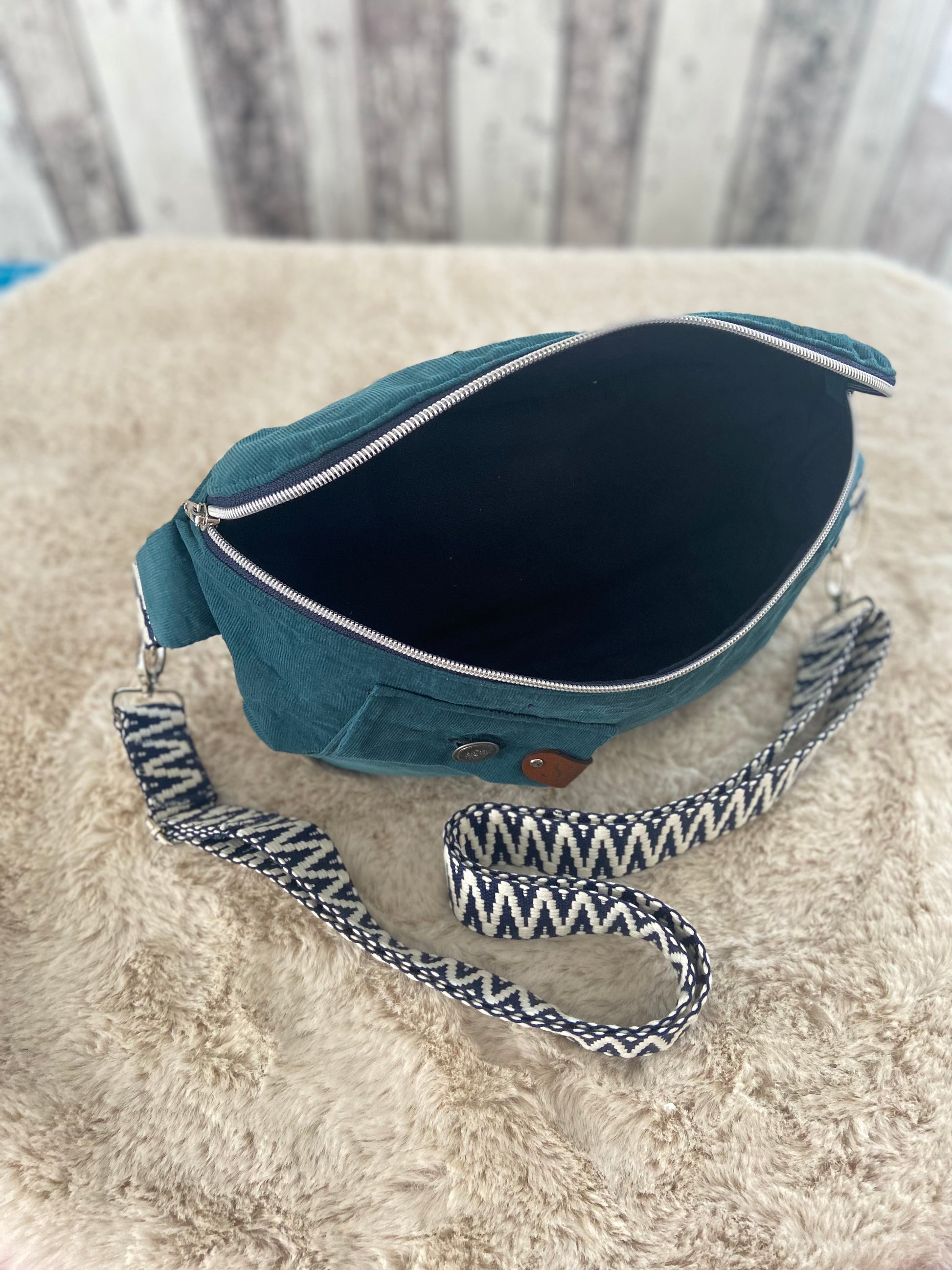 Die Tasche verfügt über ein praktisches Innenfach mit Reißverschluss, um deine Wertsachen sicher zu verstauen. Zusätzlich gibt es teilweise kleine Taschen auf der Vorder- und/oder Rückseite (siehe Bilder), um noch mehr Ordnung zu schaffen.